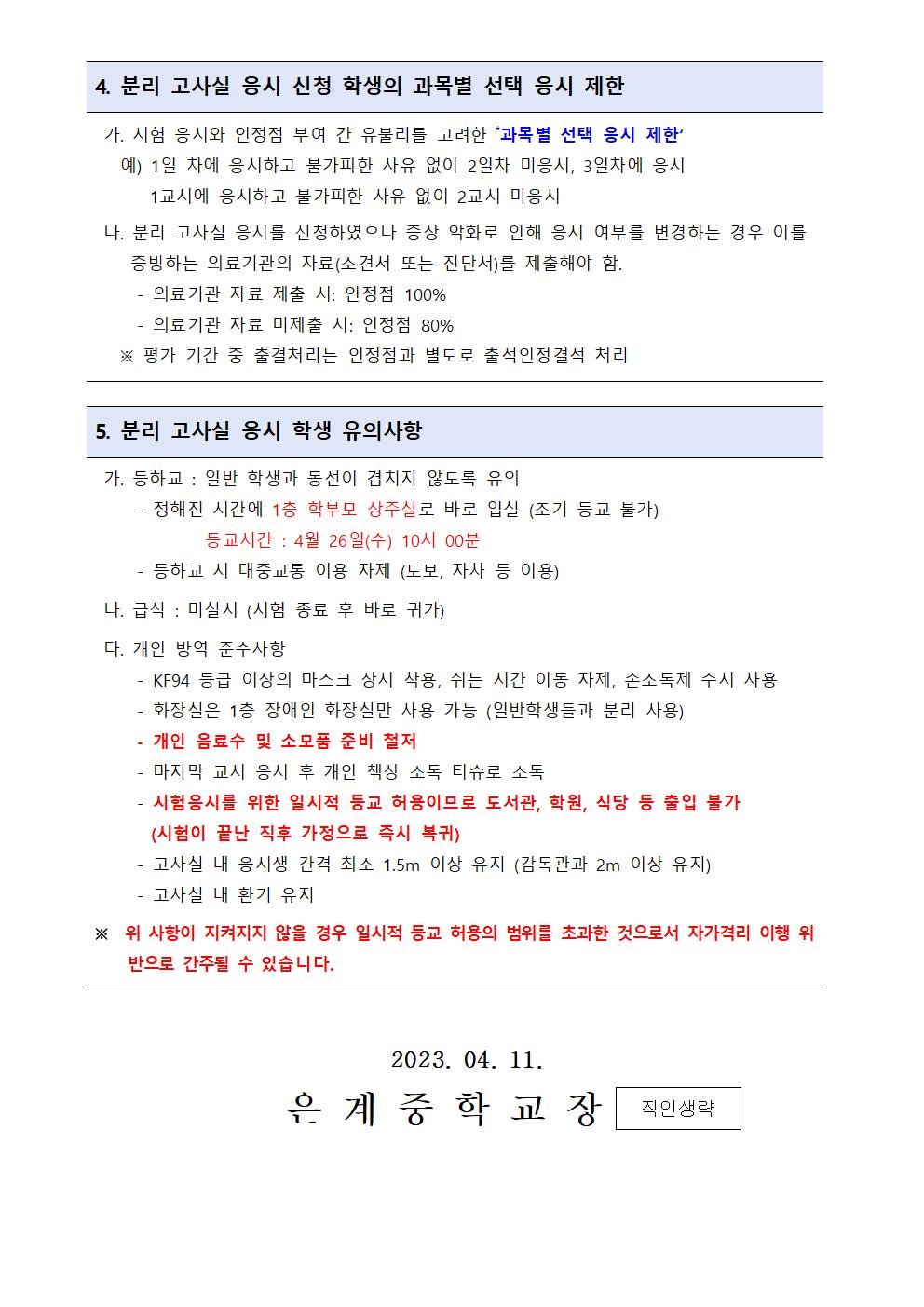 [ÀϹÝ] [Àº°èÁß 2023-61È£]2023Çг⵵ 1Çбâ 1Â÷ ÁöÇÊÆò°¡ ºÐ¸® °í»ç½Ç ¿î¿µ ¾È³»ÀÇ Ã·ºÎÀ̹ÌÁö 4