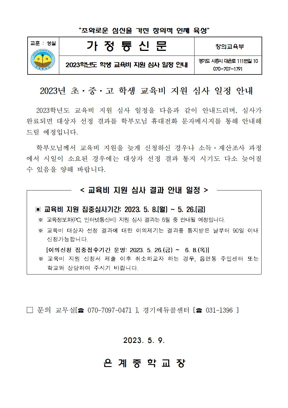 [ÀϹÝ] [Àº°èÁß 2023-78È£]2023Çг⵵ Çлý ±³À°ºñ Áö¿ø ½É»ç ÀÏÁ¤ ¾È³»
