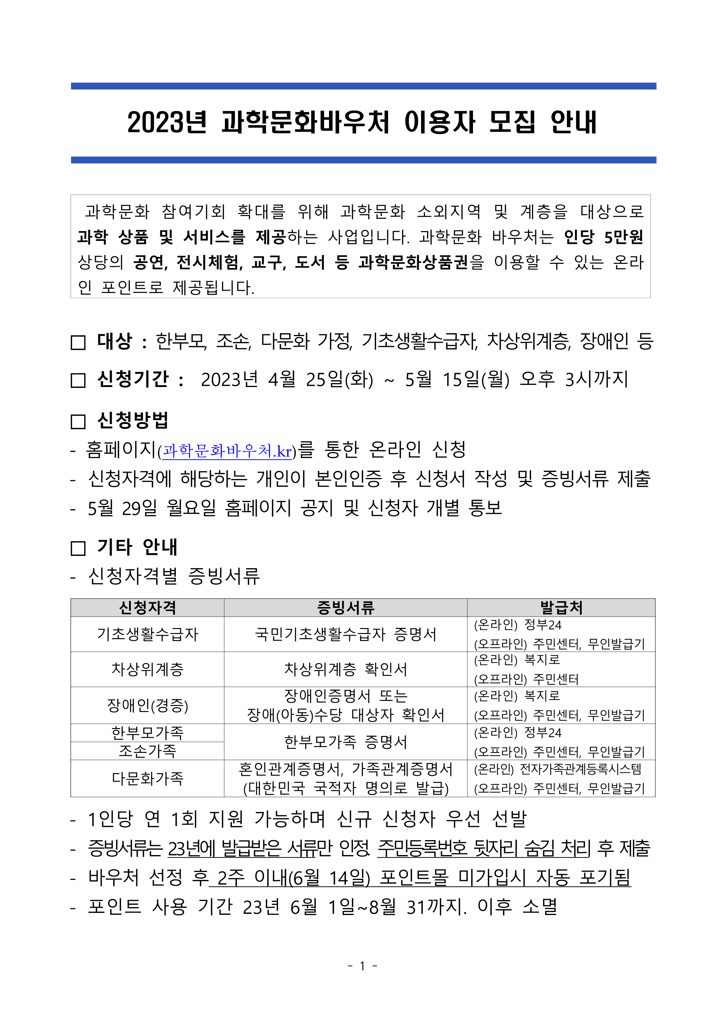 [ÀϹÝ] 2023 °úÇй®È­¹Ù¿ìó ÀÌ¿ëÀÚ ¸ðÁý ¾È³»ÀÇ Ã·ºÎÀ̹ÌÁö 1