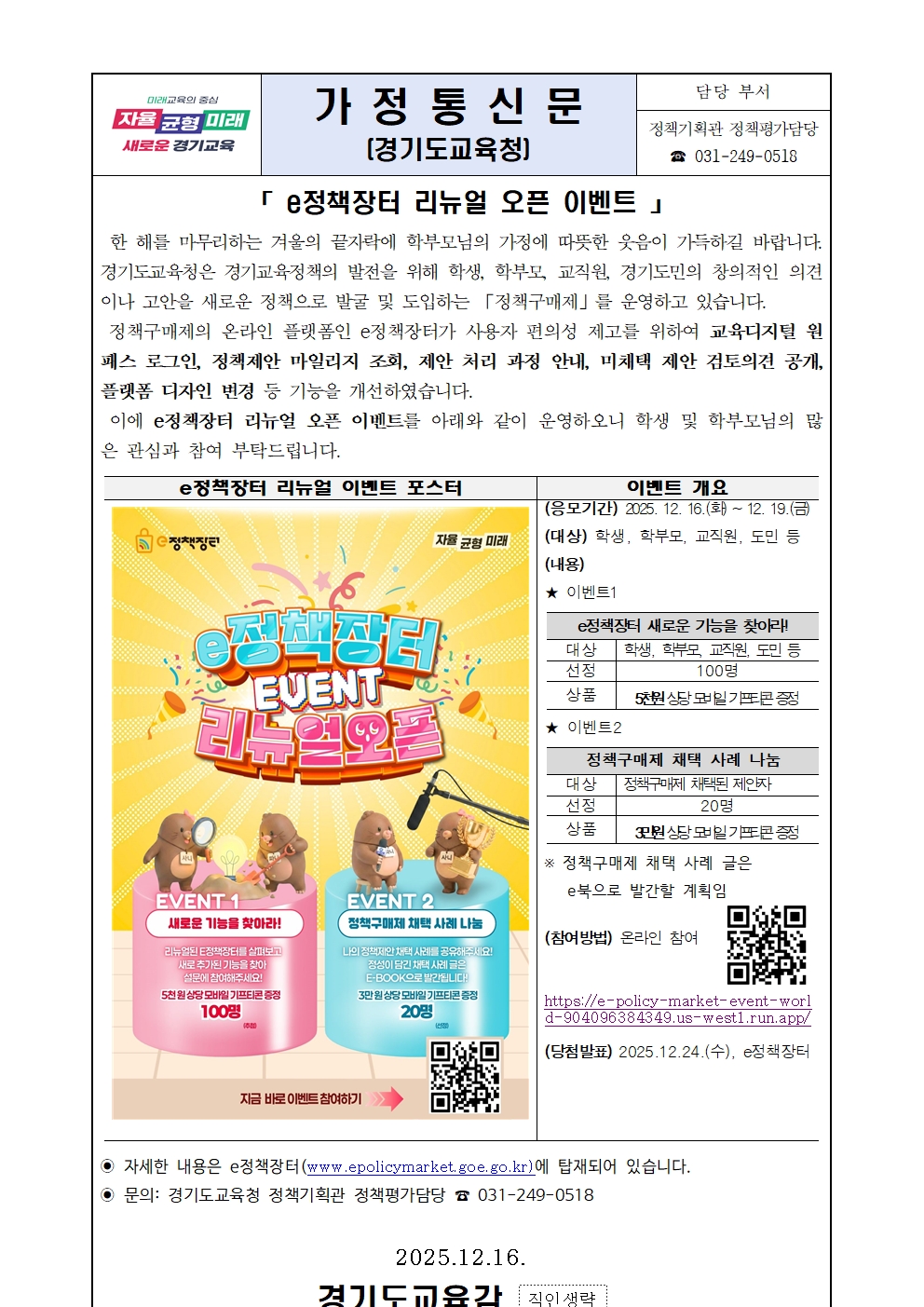 [ÀϹÝ] [Àº°èÁß 2025-161È£] eÁ¤Ã¥ÀåÅÍ ¸®´º¾ó ¿ÀÇ À̺¥Æ® È«º¸ °¡Á¤Åë½Å¹®ÀÇ Ã·ºÎÀ̹ÌÁö 1