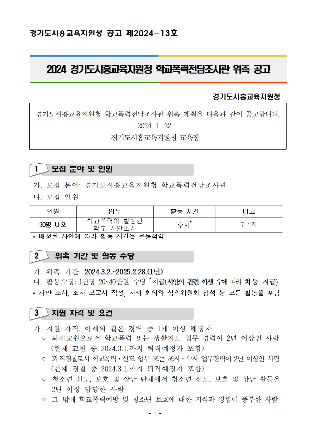 [¾Ë¸²] 2024 °æ±âµµ½ÃÈï±³À°Áö¿øÃ» Çб³Æø·ÂÀü´ãÁ¶»ç°ü À§ÃË °ø°í ¾È³»