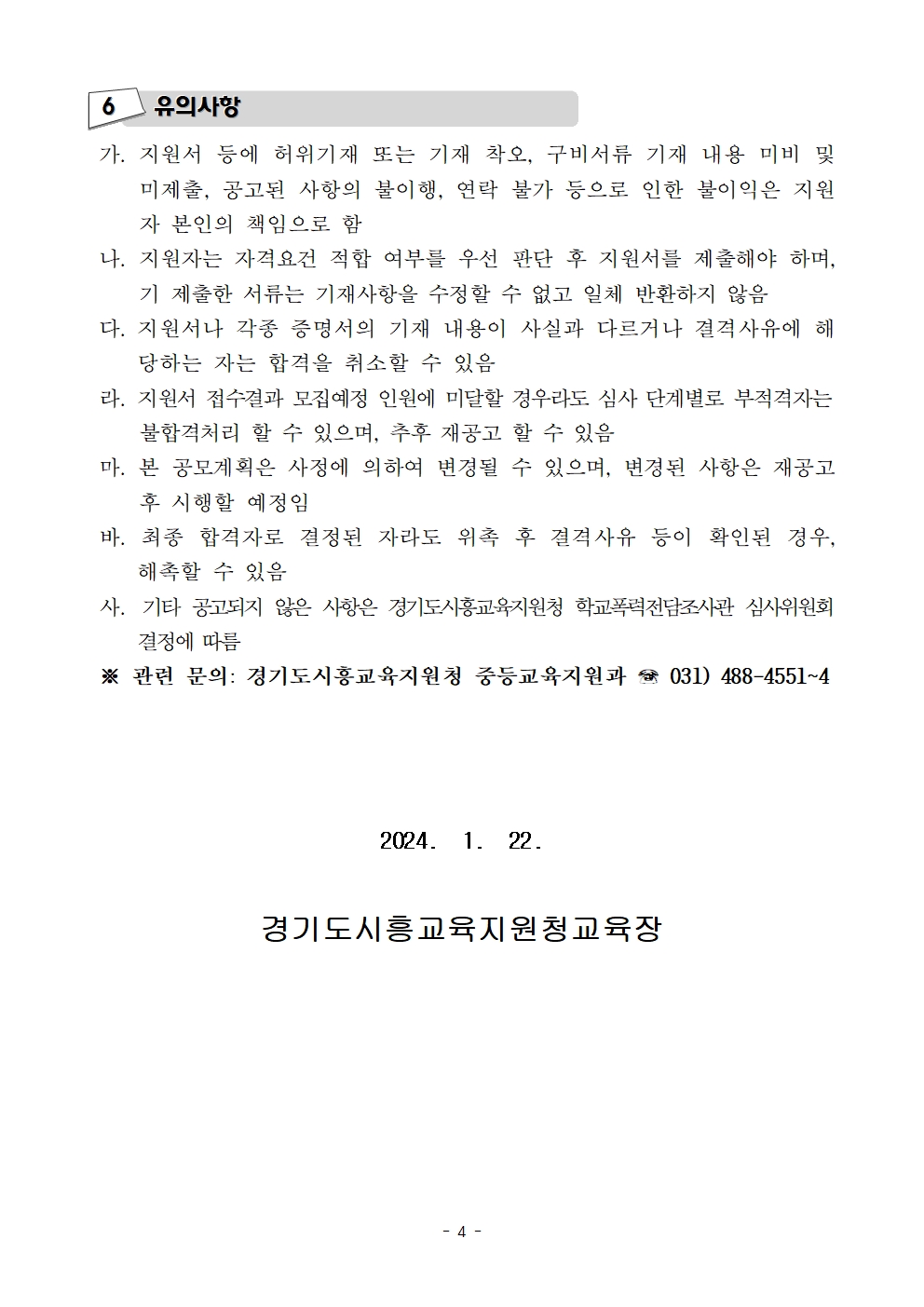 [ÀϹÝ] 2024 °æ±âµµ½ÃÈï±³À°Áö¿øÃ» Çб³Æø·ÂÀü´ãÁ¶»ç°ü À§ÃË °ø°í ¾È³»ÀÇ Ã·ºÎÀ̹ÌÁö 4