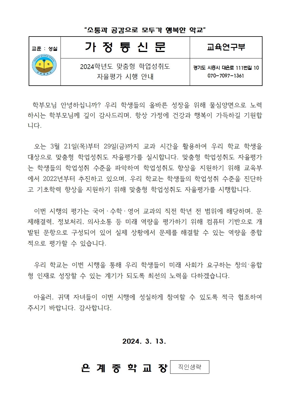 [ÀϹÝ] [Àº°èÁß 2023-22È£] 2024Çг⵵ ¸ÂÃãÇü Çо÷¼ºÃëµµ ÀÚÀ²Æò°¡ ½ÃÇà ¾È³»ÀÇ Ã·ºÎÀ̹ÌÁö 1