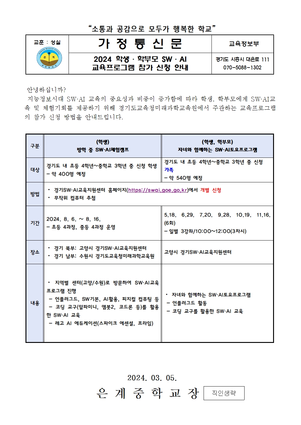 [ÀϹÝ] [Àº°èÁß 2024-116È£]2024 Çлý.Çкθð SW.AI ±³À°ÇÁ·Î±×·¥ Âü°¡ ½Åû ¾È³»ÀÇ Ã·ºÎÀ̹ÌÁö 1