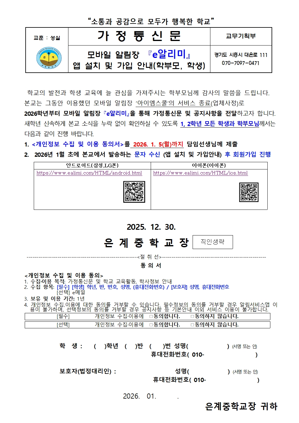 [ÀϹÝ] [Àº°èÁß 2025-167È£] e¾Ë¸®¹Ì Çкθð(Çлý) °¡ÀÔ ¾È³» °¡Á¤Åë½Å¹®(1,2Çгâ) ¹ß¼ÛÀÇ Ã·ºÎÀ̹ÌÁö 1